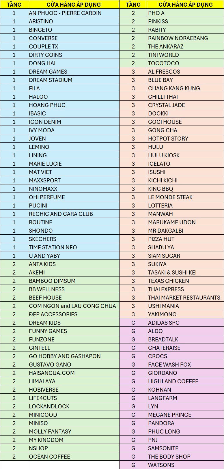Ưu đãi chỉ áp dụng tại 1 số cửa hàng trong TTTM (áp dụng các cửa hàng trong danh sách đính kèm phía trên), không áp dụng khu vực siêu thị và TTBHTH AEON