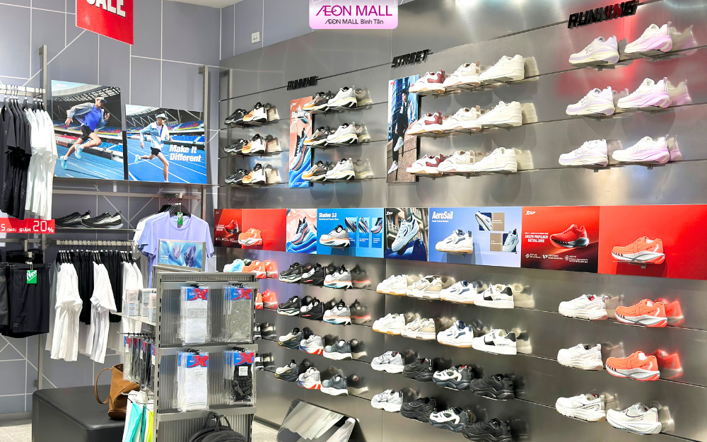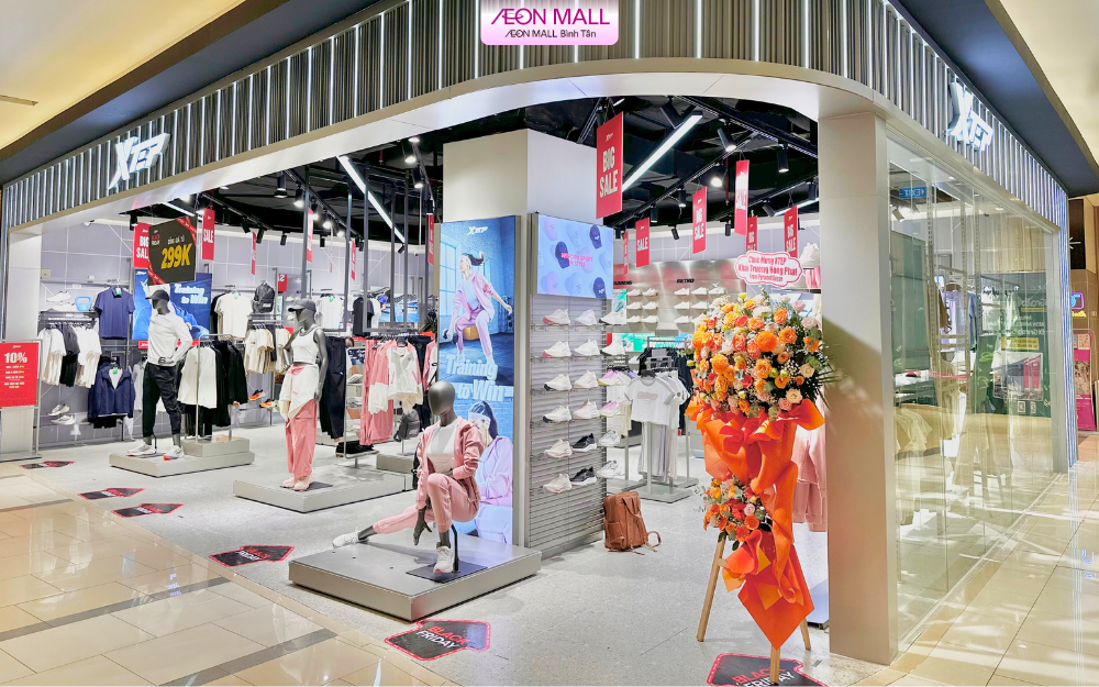 Cửa hàng XTEP AEON MALL Bình Tân được thiết kế theo tiêu chuẩn hiện đại, mang đến một không gian mua sắm thoáng đãng, giúp khách hàng dễ dàng trải nghiệm và lựa chọn các bộ sưu tập mới nhất từ thương hiệu.